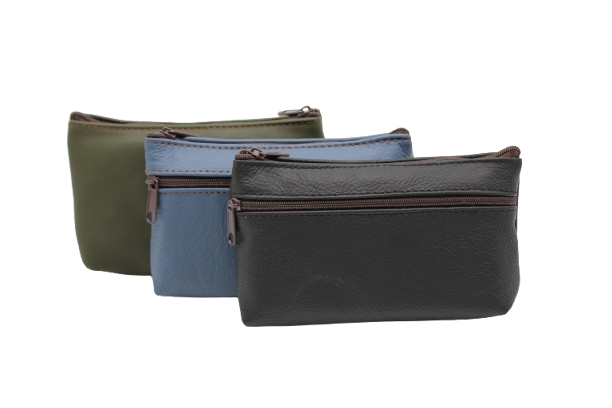 Monedero en piel natural. Diseño ergonómico, alta capacidad y durabilidad. Ideal para guardar monedas y billetes en espacios reducidos.